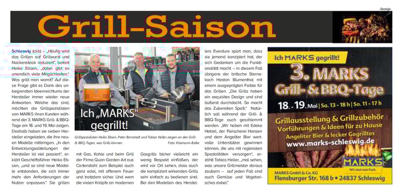 Hier finden Sie unseren Pressebereich mit einer Auswahl veröffentlichter Artikel der MARKS GmbH & Co. KG. Den Pressebereich des MARKS GRILLHAUSes finden Sie hier.